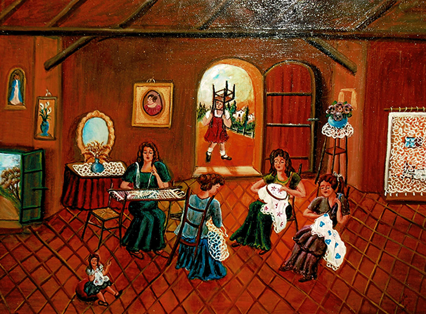 "Le ricamatrici di Cantù" - olio su tela, cm 60x80
