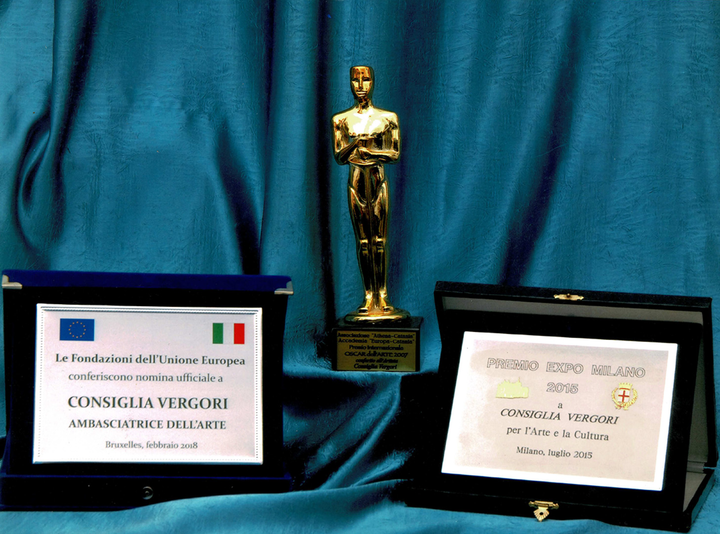 Con questo sigillo rilasciato dall’illustre critico d’arte Giorgio Falossi certifica a Consiglia Vergori, l’eccellenza e la qualità del prodotto, dichiarando la sua pittura di successo e luminosa.